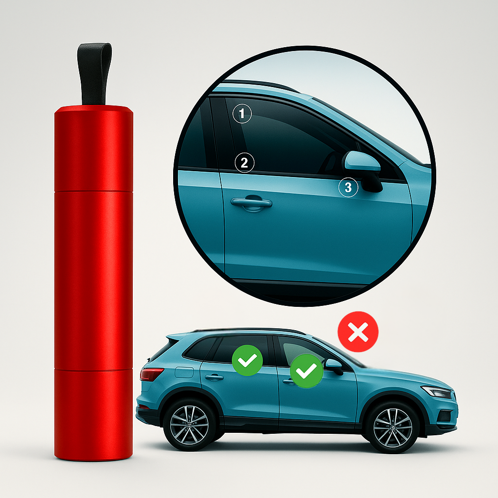 Les marteaux de sécurité encombrants ou les méthodes improvisées comme les clés ne fonctionnent pas quand la situation devient critique. SafeX est différent : compact, puissant et sûr — même pour les enfants. Le coupe-ceinture est conçu pour ne présenter aucun risque de blessure, même si des enfants curieux y touchent. Il se glisse dans la boîte à gants ou dans votre poche, et vous sort de situations potentiellement mortelles en quelques secondes.